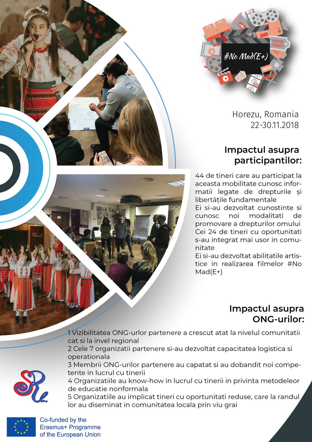 2 In urma proiectului 44 de tineri si-au dezvoltat competentele artistice in domeniul filmului, actoriei, creatii, muzicii si au transmis mesaje pozitive in randul tinerilor din comunitatile lor locale.